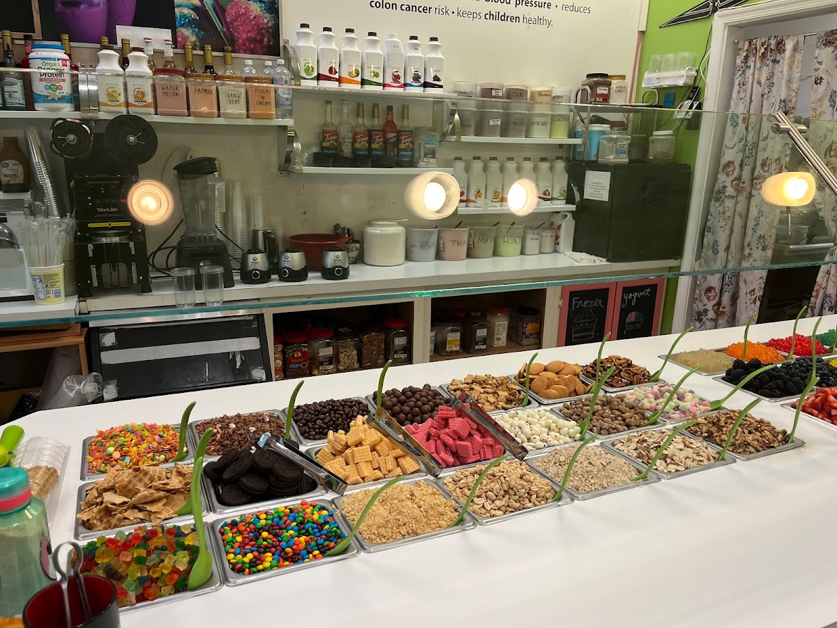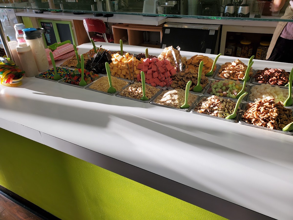 I truly wish I could give this place a higher rating solely based on the delicious taste of their yogurt! With a wide array of flavors to choose from, I was excited to try. However, my experience was somewhat dampened by the stale toppings. It wasn't just the cookie dough; even the cookies and nuts seemed past their prime. Despite this, the ambiance of the place is charming and inviting, perfect for catching up with friends. I sincerely hope they address the freshness of their toppings because the service was great and yogurt too, and it has the potential to be a fantastic spot.